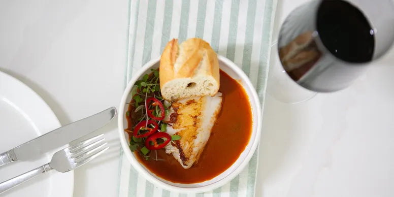 Our take on a classic bouillabaisse recipe is a type of French seafood stew that combines fish, shellfish and vegetables in a tasty broth.